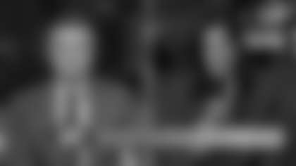 Los Angeles Rams quarterback Matthew Stafford catches a pass for two-point conversion via trick play against the Dallas Cowboys.